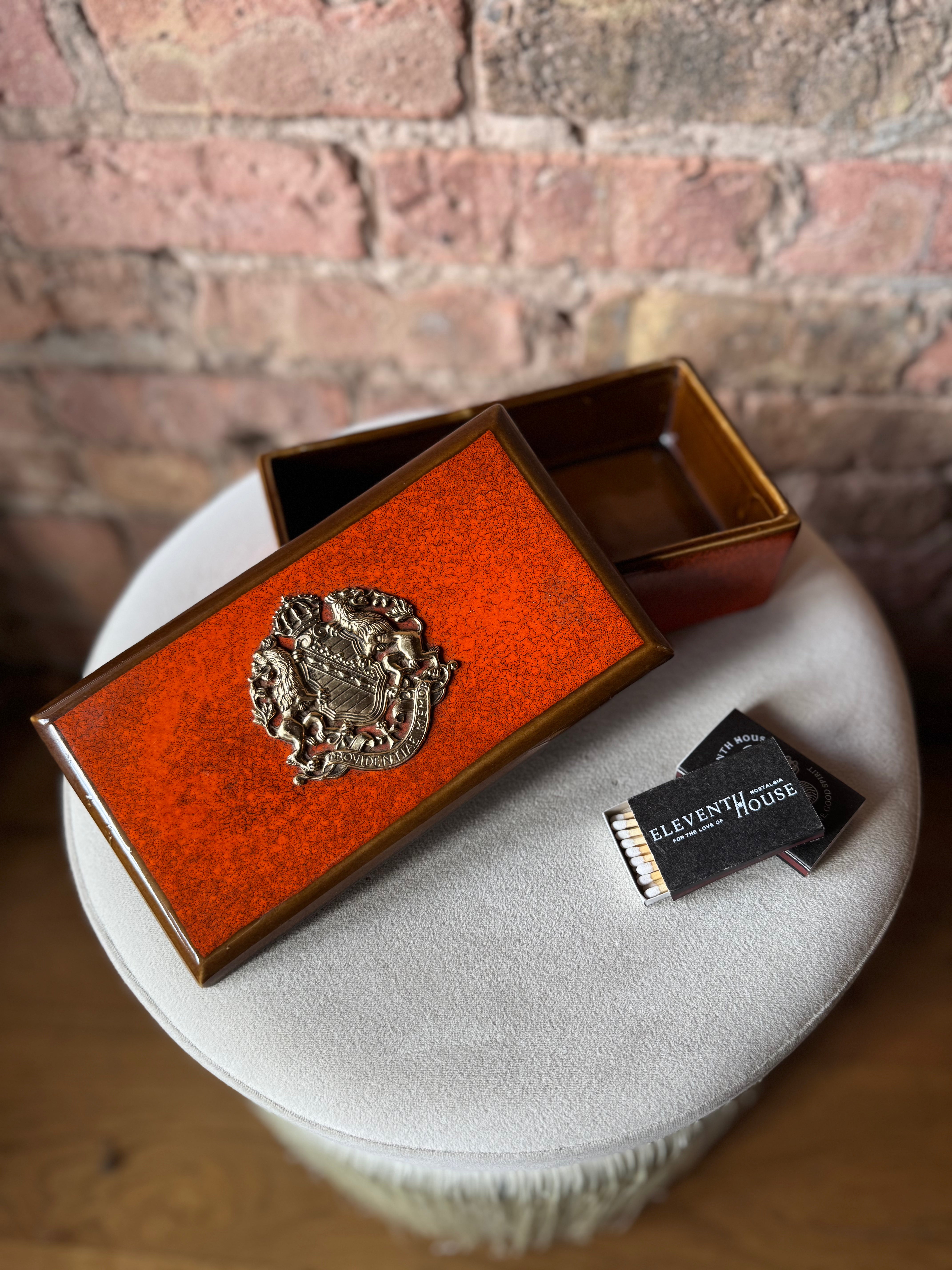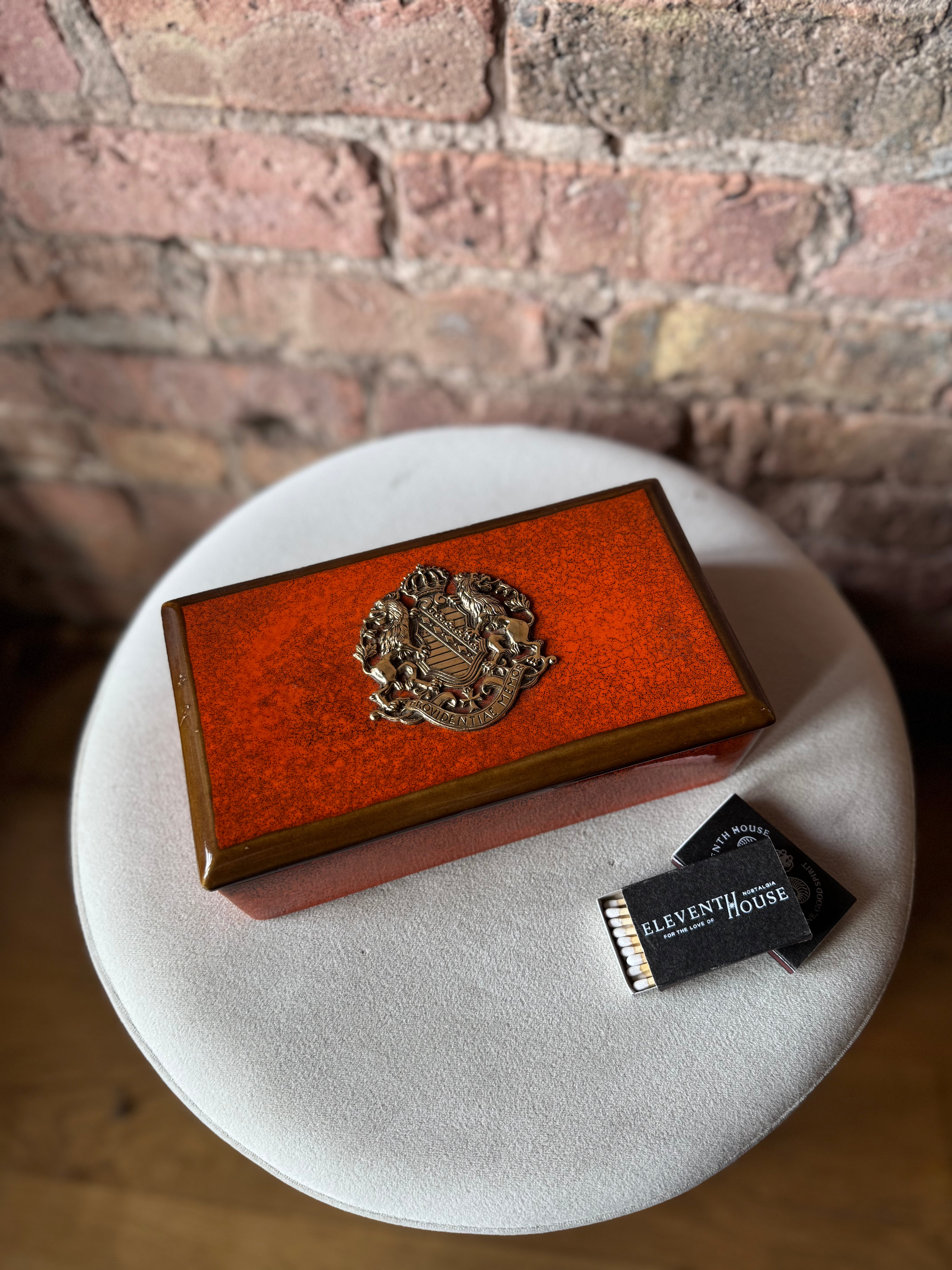 This remarkable Italian porcelain box invites you to celebrate the beauty of preservation and memory. Its warm amber enamel glaze and distinguished crest inscribed with "Providentia" serve as a gentle reminder that foresight and intention matter. Hand-numbered as 44 of 88, this thoughtfully crafted piece was created for those who appreciate quality and authenticity. 18oz