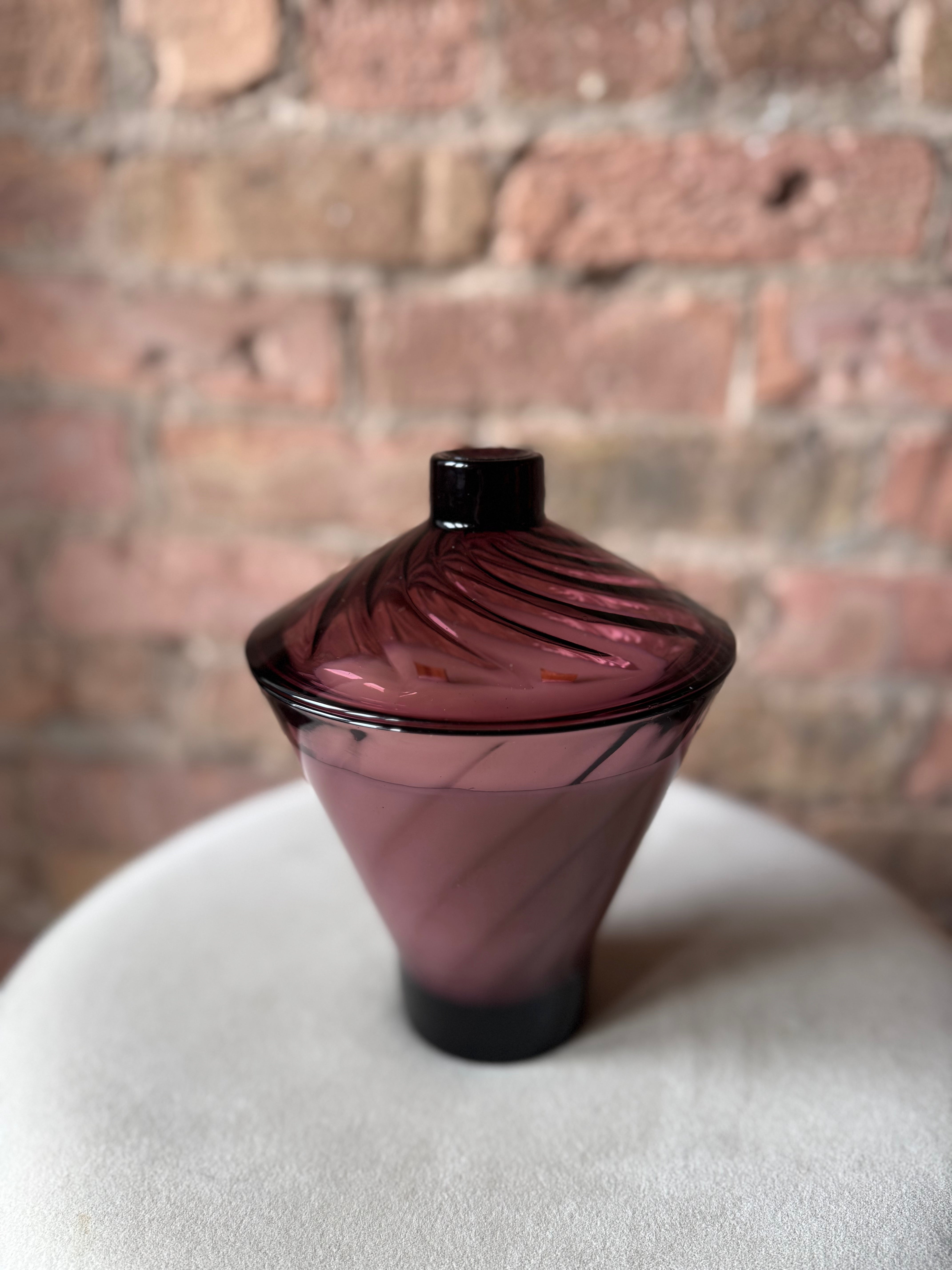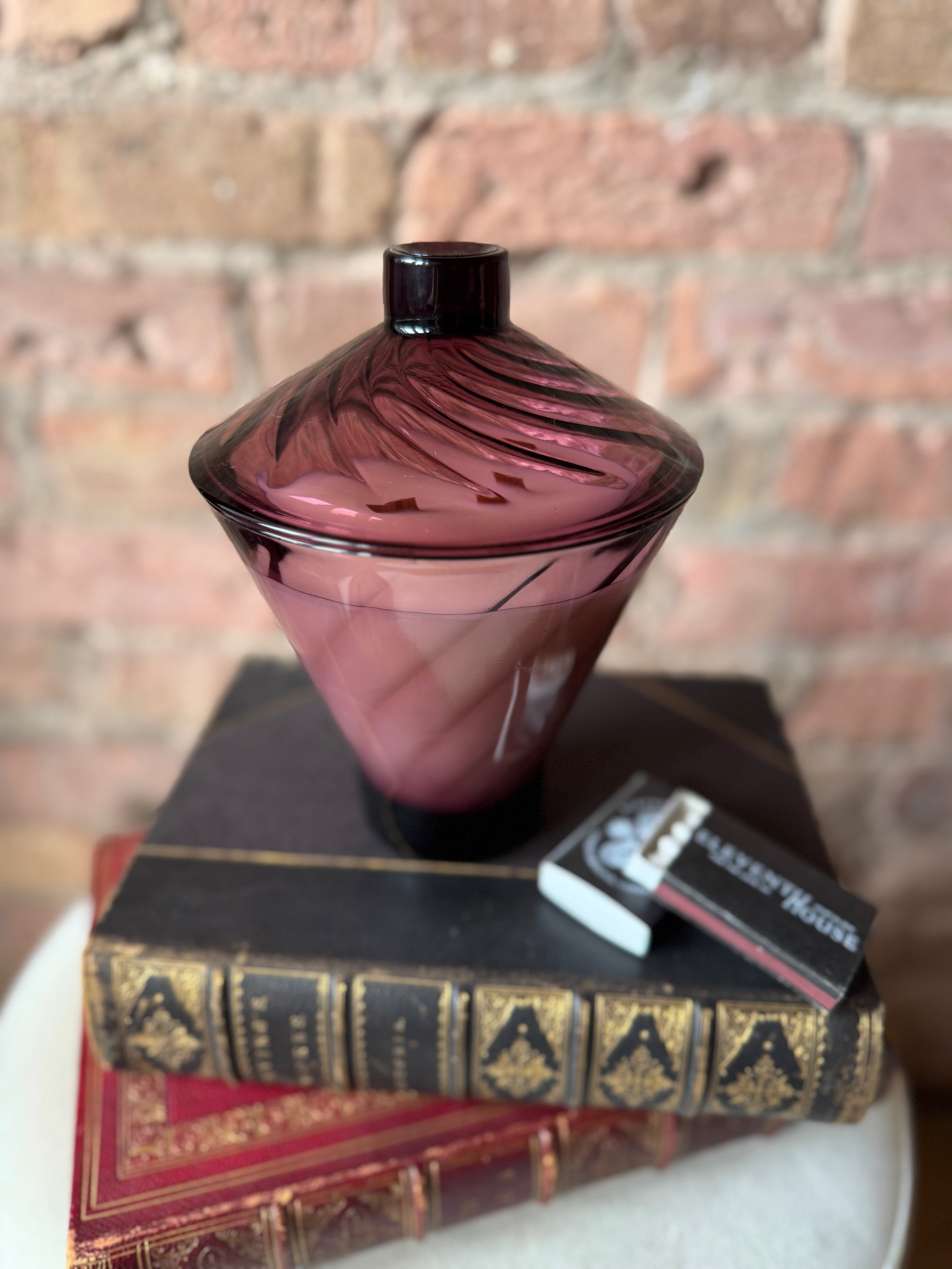 Add a splash of mid century modern charm to your space with the Amethyst Swirl candle. Its moody vibes and mesmerizing swirl pattern create the perfect ambiance for cozy evenings or stylish gatherings. Let this decor piece light up your room with a playful yet sophisticated glow.