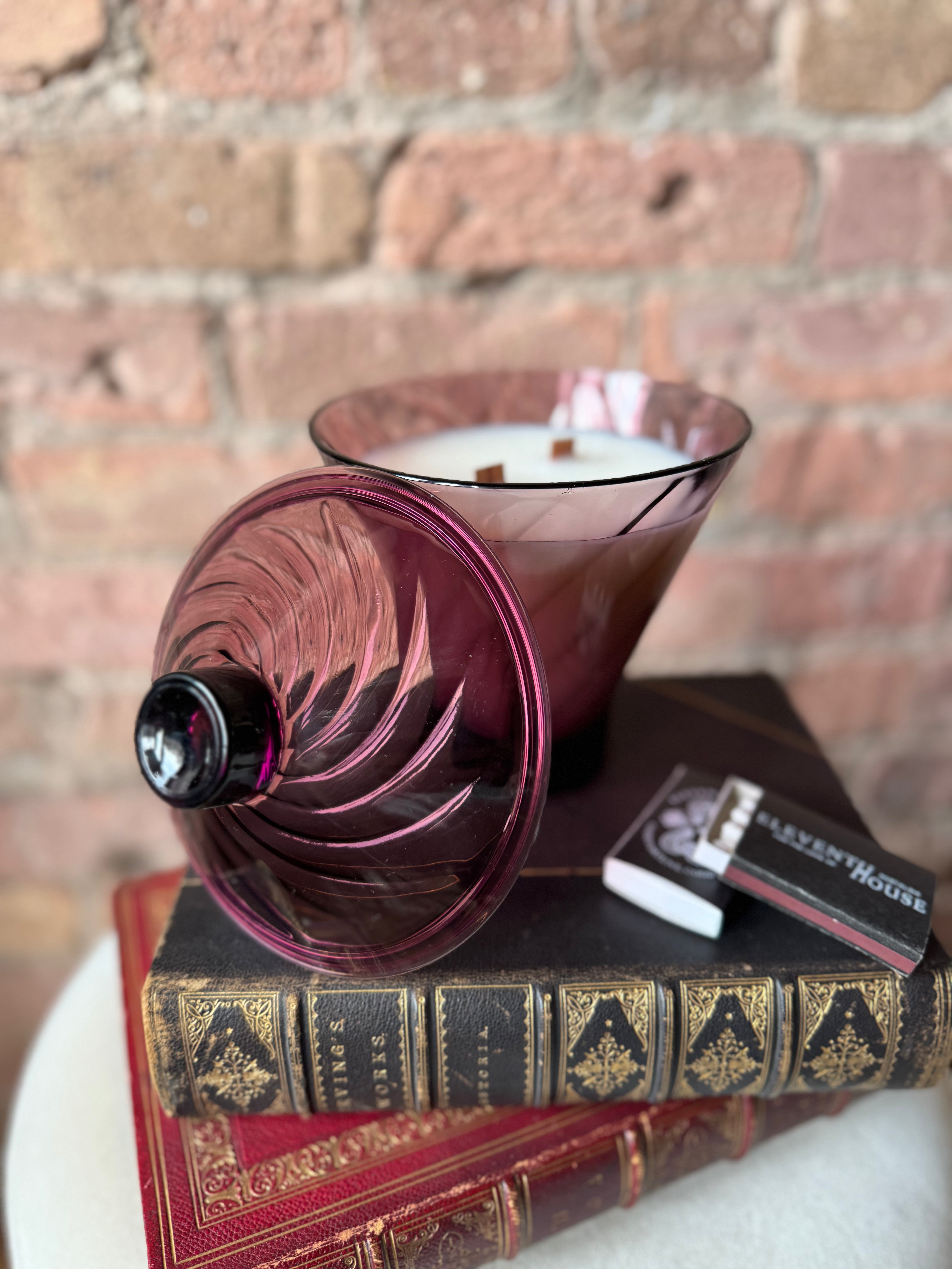 Eleventh House antique candle vessel after being filled with non-toxic wax and wooden wicks