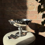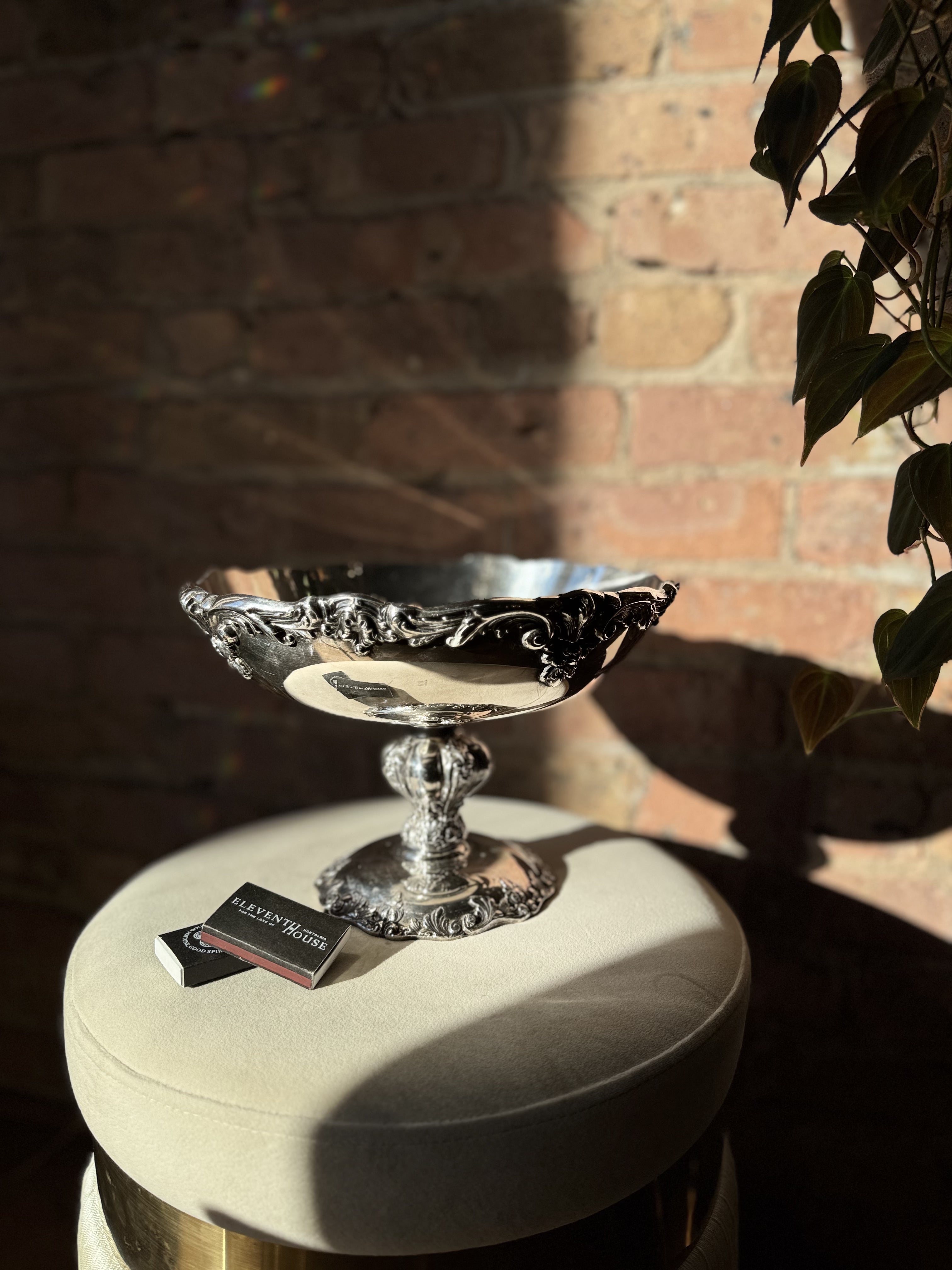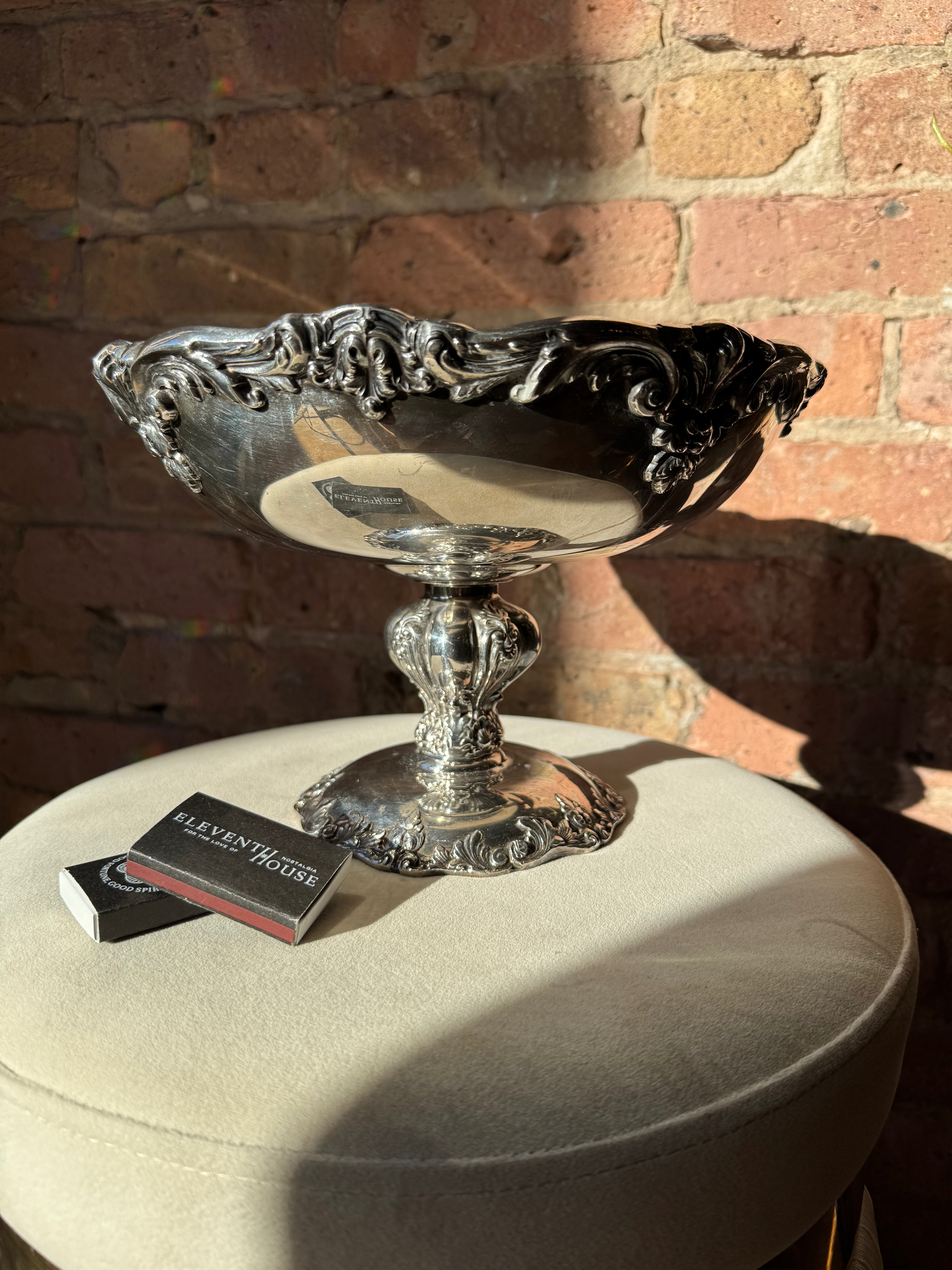 Add a touch of elegance to your home with our extra large antique Reed & Barton silverplate compote circa 1945. Holding 60oz of wax, the intricate silver design will make a statement in any space.  *wax included
