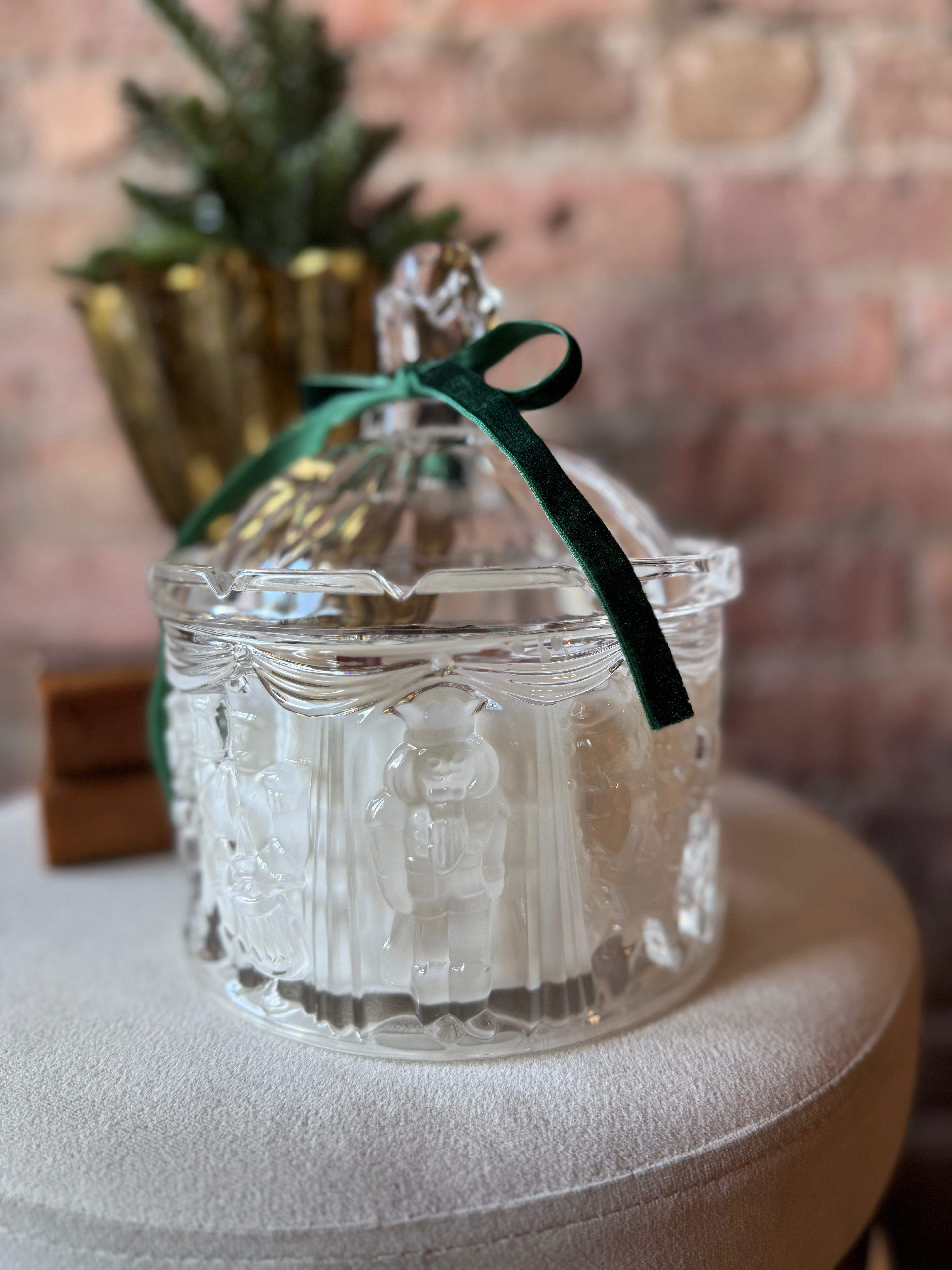 Step into a magical performance with this stunning crystal jar that brings the Nutcracker ballet to life! Watch as the intricate nutcracker design glows and dances when you light the candle inside, creating an enchanting display that twirls with every flicker. Wrapped in the rich, woodsy embrace of Holly Scent—a sophisticated blend of balsam and cedar—this beauty transforms any room into a winter theater of wonder.