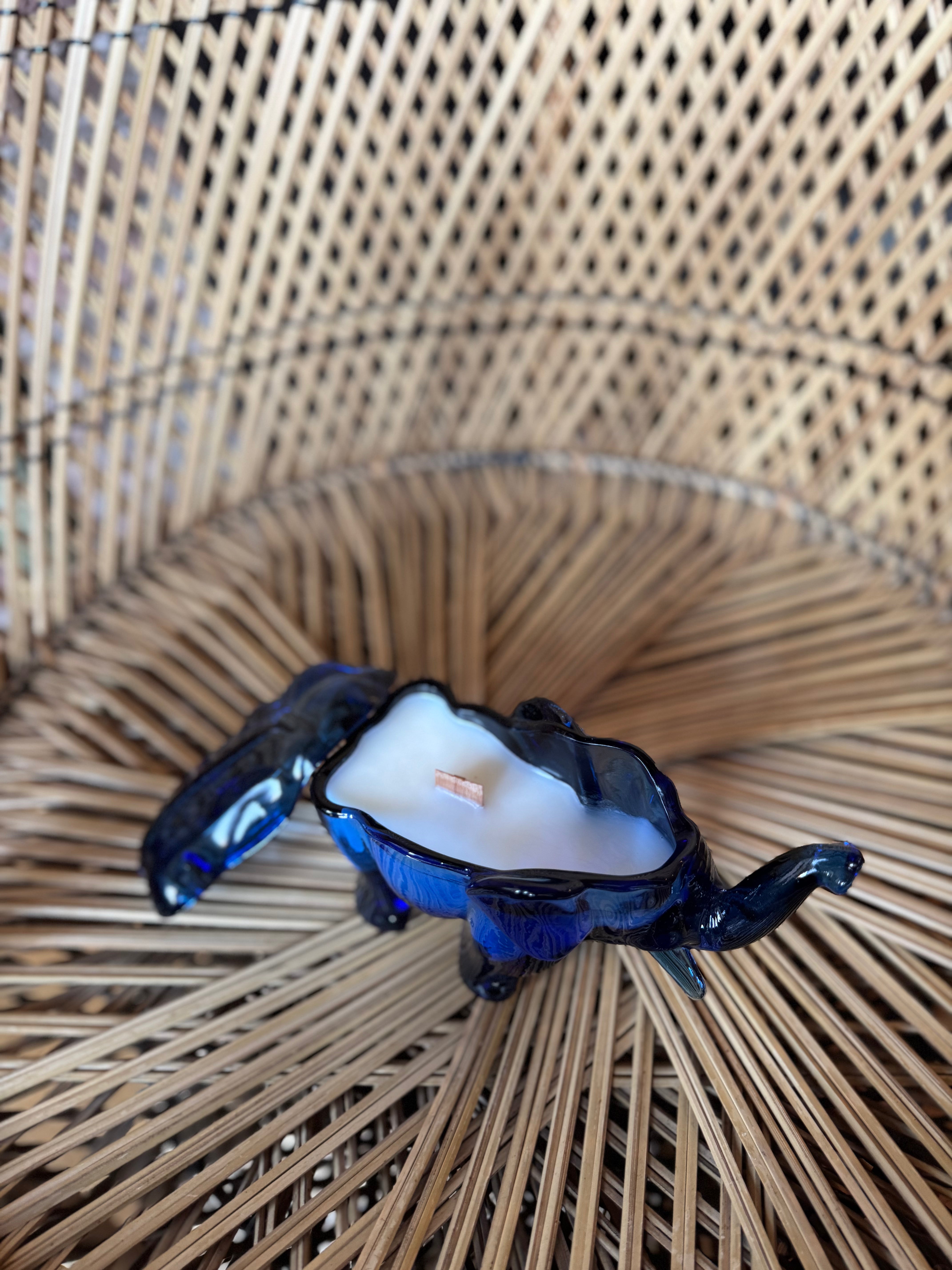 Lucky Blue is your new good luck charm—a vibrant blue glass elephant with its trunk raised high to invite positivity. After you’ve enjoyed burning it, it transforms into the perfect playful jewelry holder, keeping your treasures safe and stylish. Bring home a little luck with this truly RARE find. 7oz