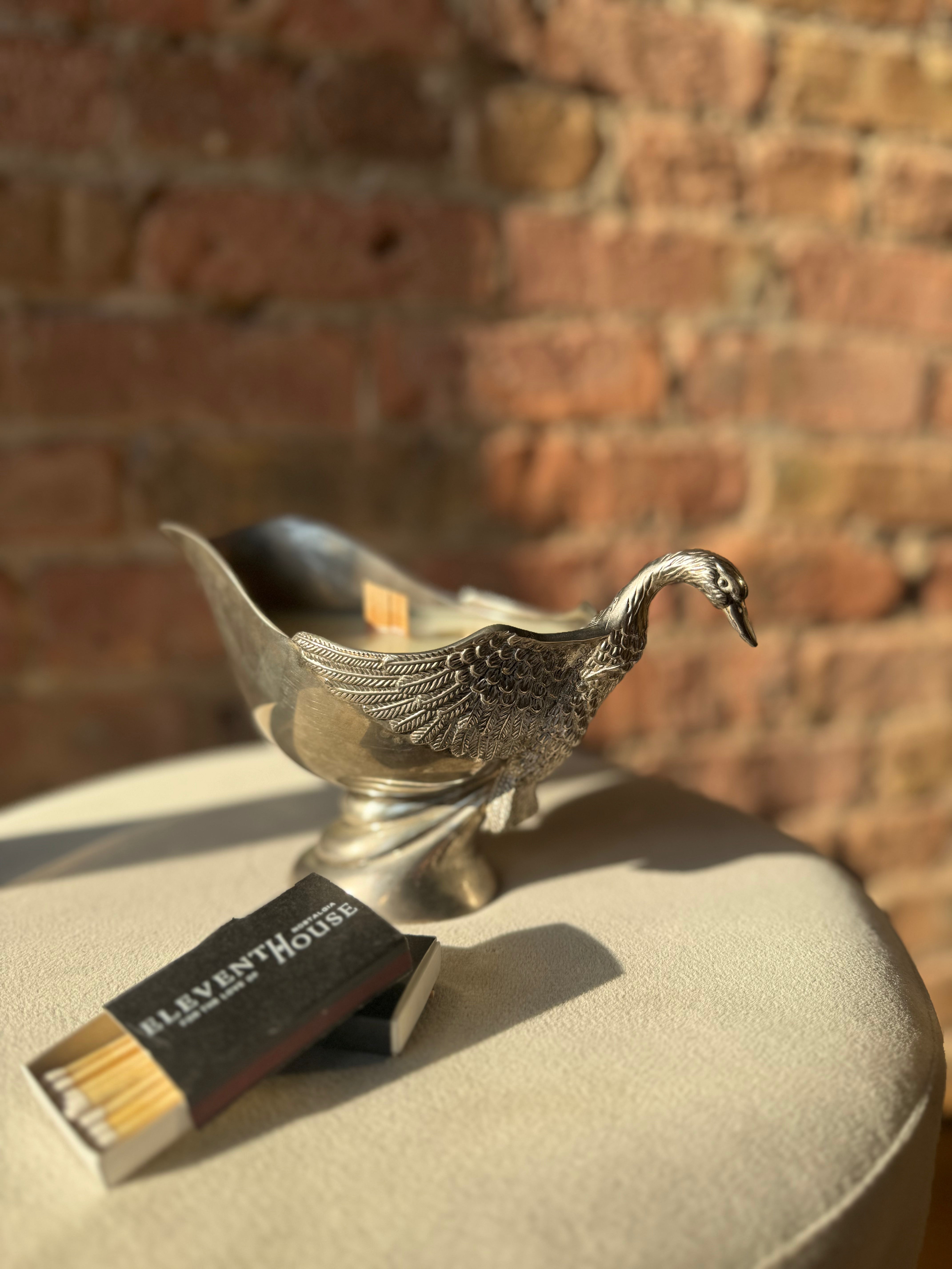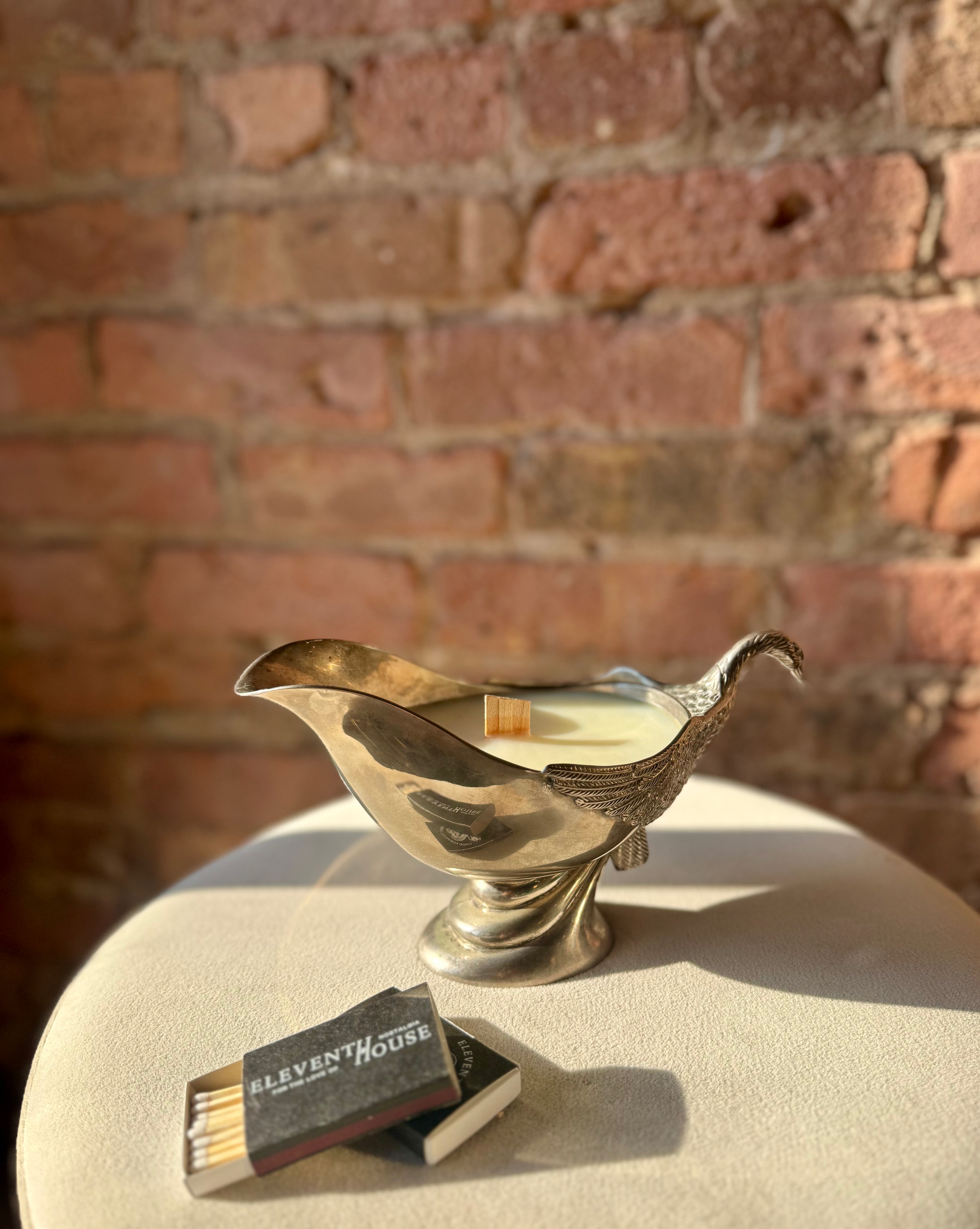 Add a touch of charm to your table with this antique silver gravy boat, shaped like a graceful swan or a proud turkey. Perfect for hosting festive meals, it’s stamped SILEA France to showcase its vintage authenticity. Paired with Billie to create a cozy, inviting atmosphere that will have your guests asking for seconds—both in gravy and good company! 12oz