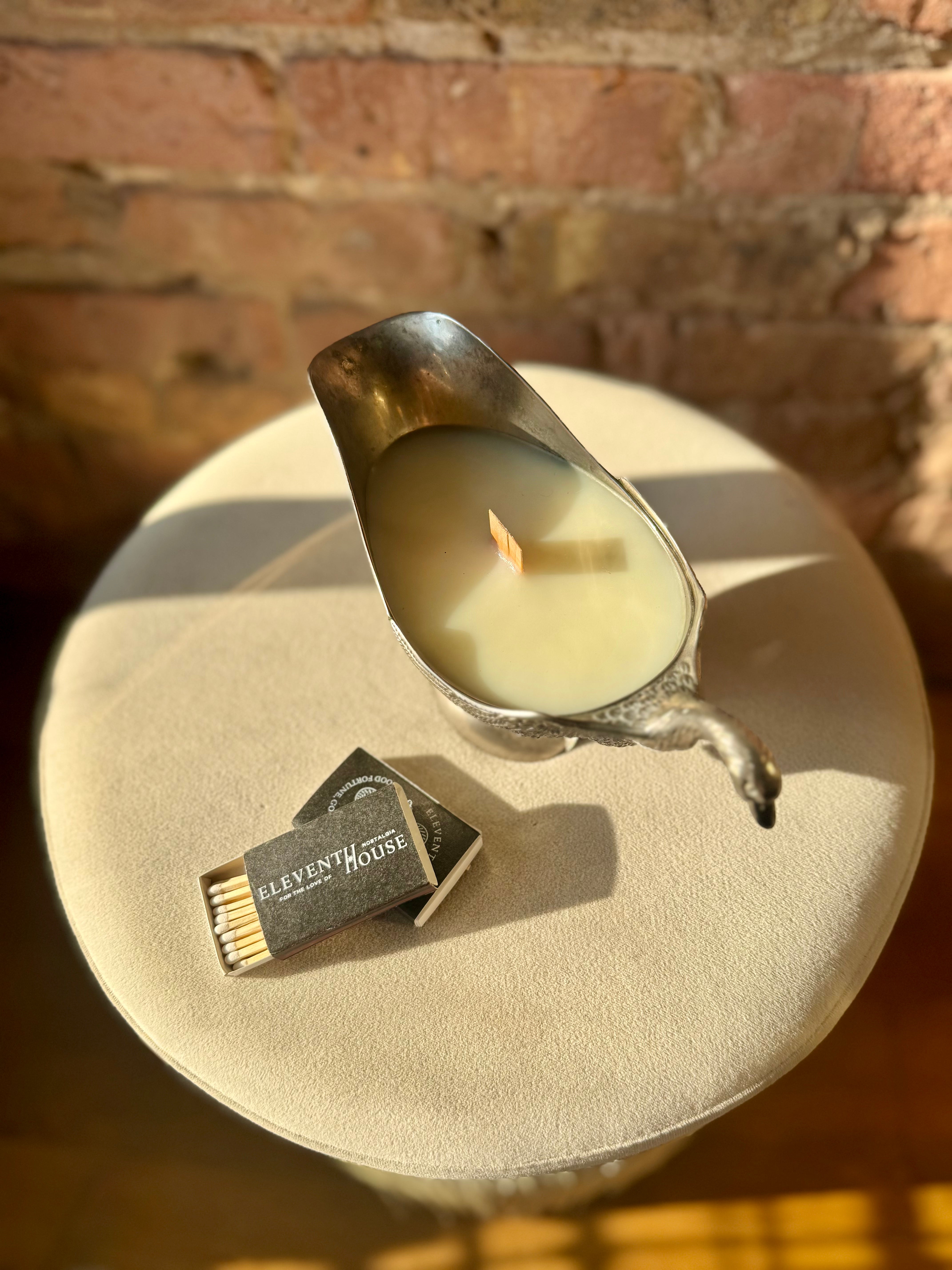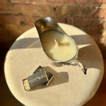 Eleventh House antique candle vessel after being filled with non-toxic wax and wooden wicks